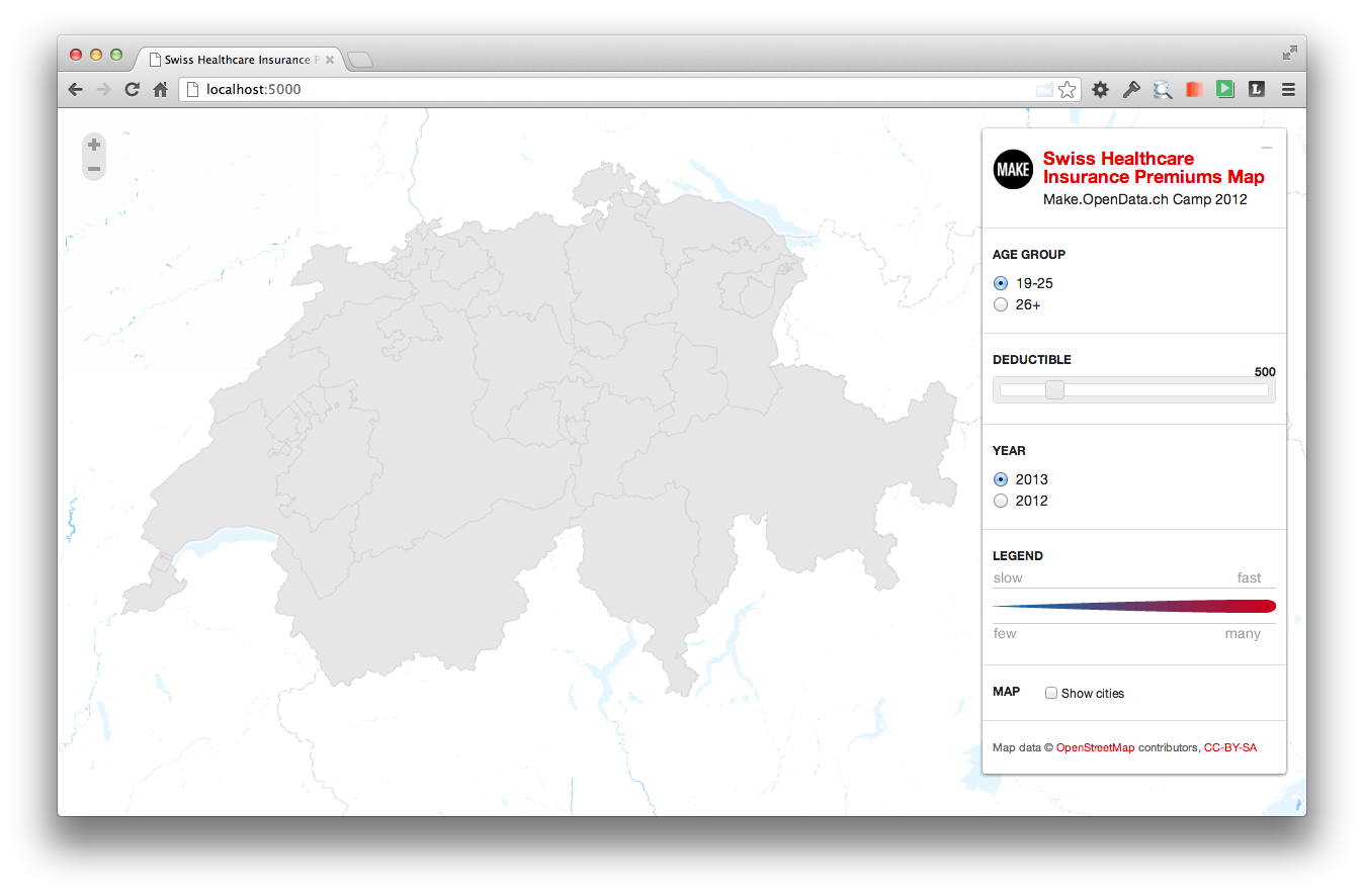 Update SA 29.09.2012 10:15: Tag zwei der Hackdays. Wir haben nun neue Farben mit mehr Bedeutung: rot = über den CH-Durchschnitt / grün = unter dem CH- Durchschnit